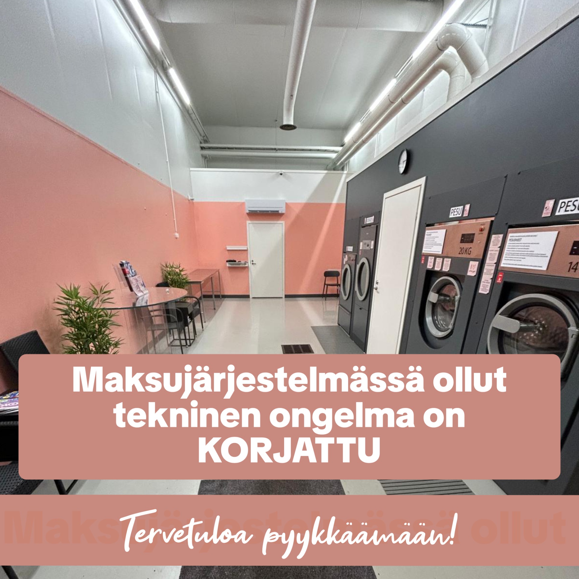 Eilen tiedotimme maksujärjestelmän teknisestä viasta - vika on nyt korjattu, joten eikun pyykkäämään❣️